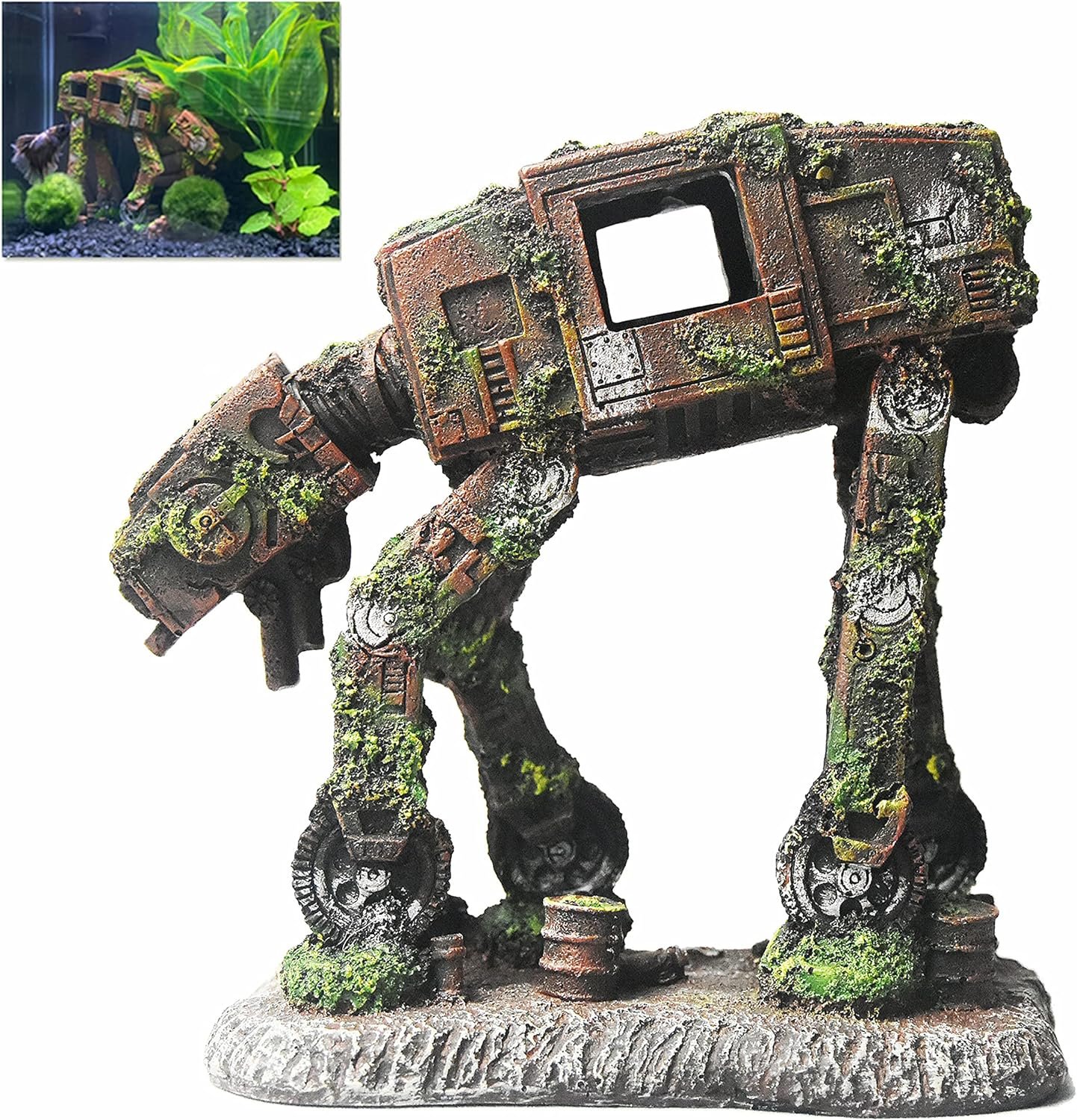 Bring the epic battles of Star Wars to your aquarium with this stunning AT-AT Walker decoration! Inspired by the iconic Imperial walker destroyed by the Rebel Alliance on Hoth, this detailed resin ornament transforms your fish tank into a galactic underwater battlefield that Star Wars fans will instantly recognize and love.